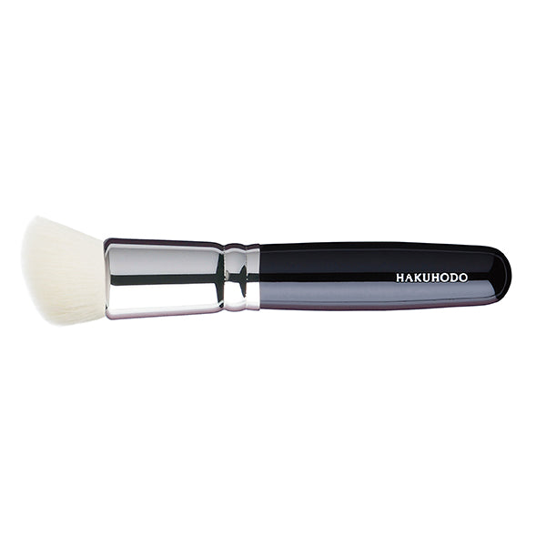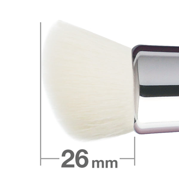 毛質:山羊ベースメイク用として、パウダー、リキッド、クリームと、テクスチャを選ばず使える万能なファンデーション筆。山羊x山羊の段差は肌当たりの良さを残しつつ心地よいしなりがあります。平らな天面部で軽く顔料を置き、優しく叩き込むように伸ばすことで崩れにくく艶やかなベースに仕上がります。
