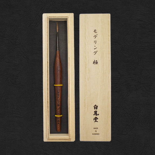 Hair:KolinskyThe lineup for plastic models and figures has been enhanced! Its fine, tapered, and long bristle tips allow for precise panel lining in pinpoint areas. With a supple yet resilient touch, it excels at both smooth color separation on curved or wide surfaces and delicate, detailed brushwork. The handle is made from bubinga wood, admired for its beautiful grain and exceptional wear resistance—a material often used in fine furniture. Express your creativity freely with a refined brush tip.