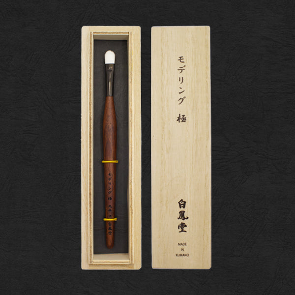 Hair:Synthetic fiberThe lineup for plastic models and figures has been enhanced! By blending special types of PBT fibers, this brush achieves a balance of goat-hair-like resilience, light touch, excellent paint absorption, and the durability of PBT. The handle is made from bubinga wood, admired for its beautiful grain and outstanding wear resistance—a material often used in fine furniture. Express your creativity freely with a refined brush tip.