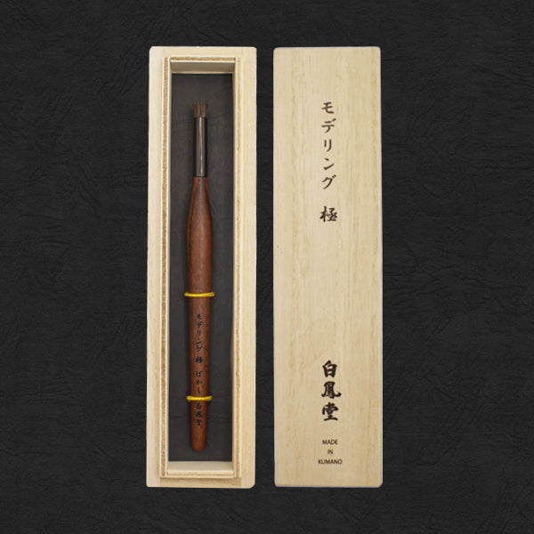Hair:HorseThe lineup for plastic models and figures has been enhanced! Made with solvent-resistant horsehair, this brush offers firm resilience, making it ideal for dry brushing on edges and raised surfaces. The handle is made from bubinga wood, admired for its beautiful grain and exceptional wear resistance—a material often used in fine furniture. Express your creativity freely with a refined brush tip.