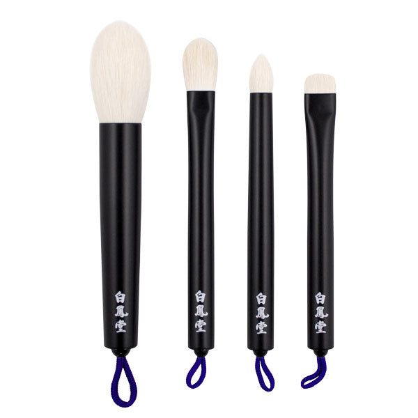 Introducing a refined set of four makeup brushes designed to elevate your daily beauty routine. These brushes feature delightfully soft bristles that gently glide over your skin delivering natural color and beautifully blended gradients for an effortless finish.